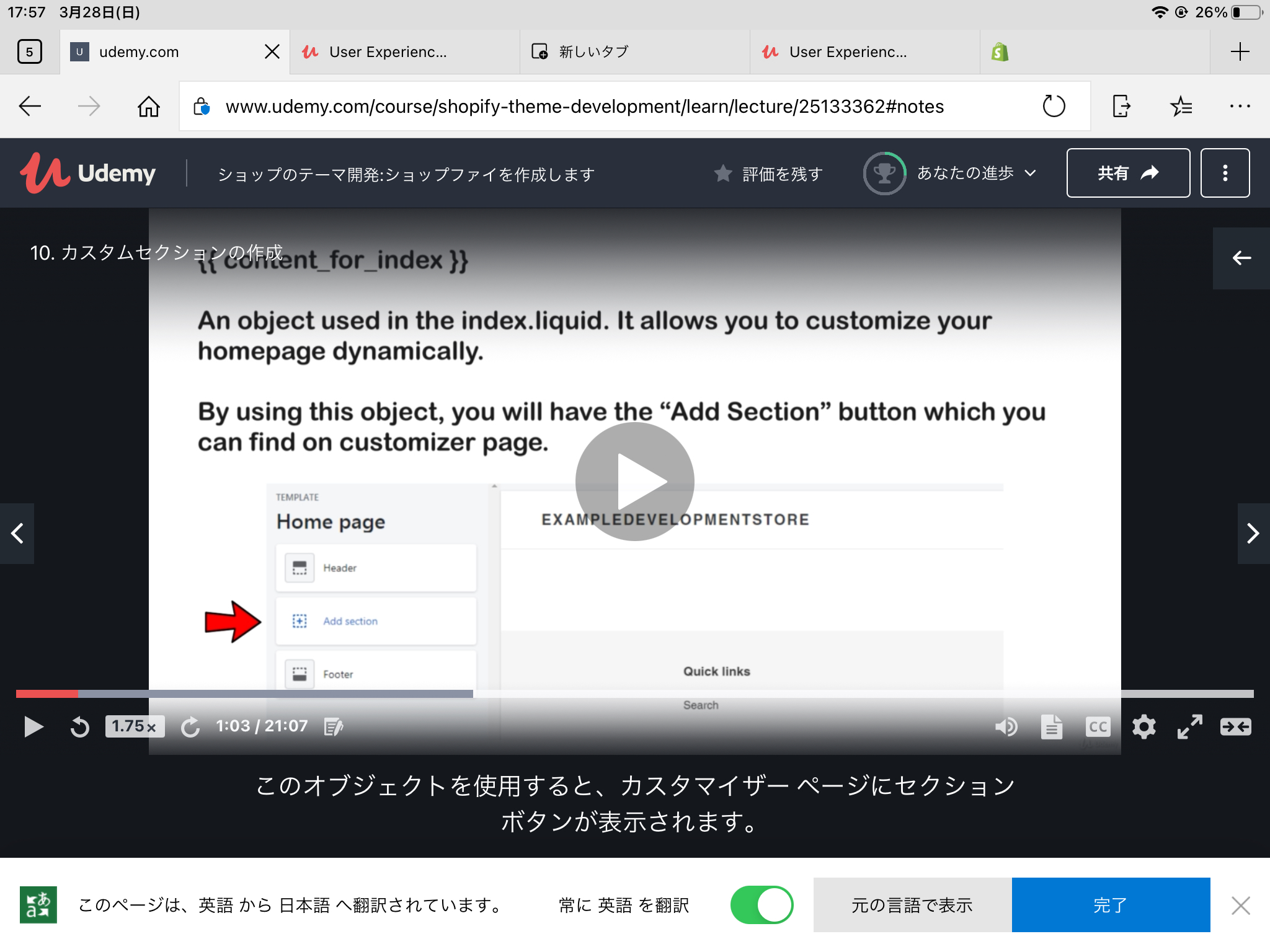 sections に translation.liquidを作成し、theme.liquidで読み込む。